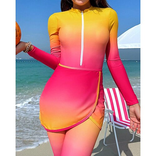 Per donna Top sottomuta Costumi da bagno interi Muta da sub Sfumatura UPF50 Asciugatura Rapida Alta elasticità Manica Lunga Costume da Bagno Cerniera Frontale Surf Immersione Snorkeling Estate