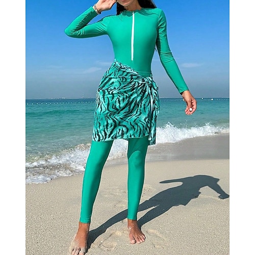 Per donna Top sottomuta Costume da bagno One Piece Patchwork Tropicale Protezione UV Alta elasticità Manica Lunga Costume da Bagno Con zip Surf Immersione Snorkeling Estate