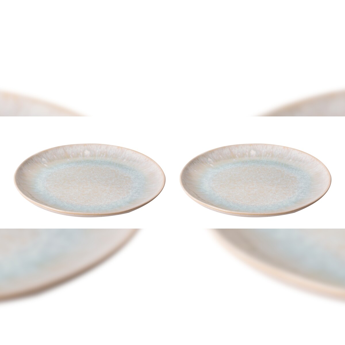 2 x palmer Light Blue Sea Teller Servieren flach im Set, Steinzeug, Ø 22,5 cm, beige hellblau gesprenkelt, Handwerkliche Ausstrahlung, für Brotzeit