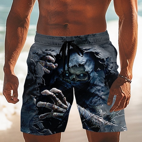 Per uomo Teschio La Morte Morte Costumi da bagno Pantaloncini da mare Pantaloncini da Surf Misura del girovita medio Retrò Vintage Stile gotico oscuro All'aperto Vacanza Tasche Laterali fodera in