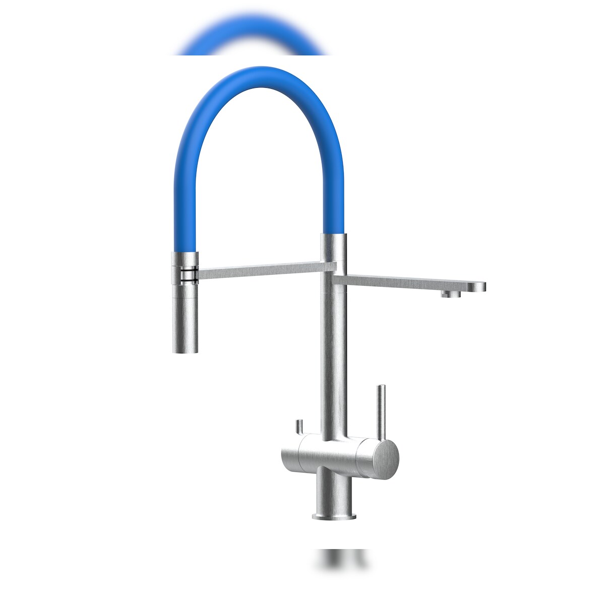 Vizio 3 Wege Wasserhahn Küchenarmatur Spültischmischer BOD, Verchromt, mit 360° schwenkbarem Türkis Auslauf und abnehmbare 2 strahl Handbrause