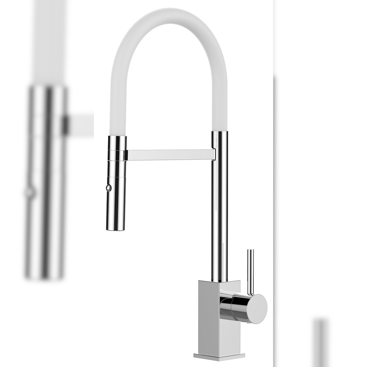 Vizio 3 Wege Wasserhahn Küchenarmatur Spültischmischer FC, Verchromt, mit 360° schwenkbarem Türkis Auslauf und abnehmbare 2 strahl Handbrause