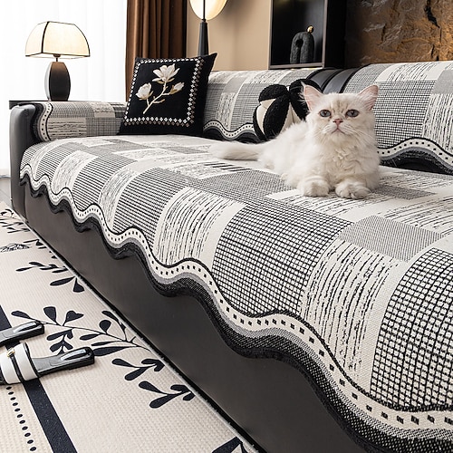 Fodera per cuscino del divano in lino e cotone di lusso per tutte le stagioni, protezione antiscivolo per divano dalla forma irregolare, elegante copridivano con fodera per schienale, adatta agli