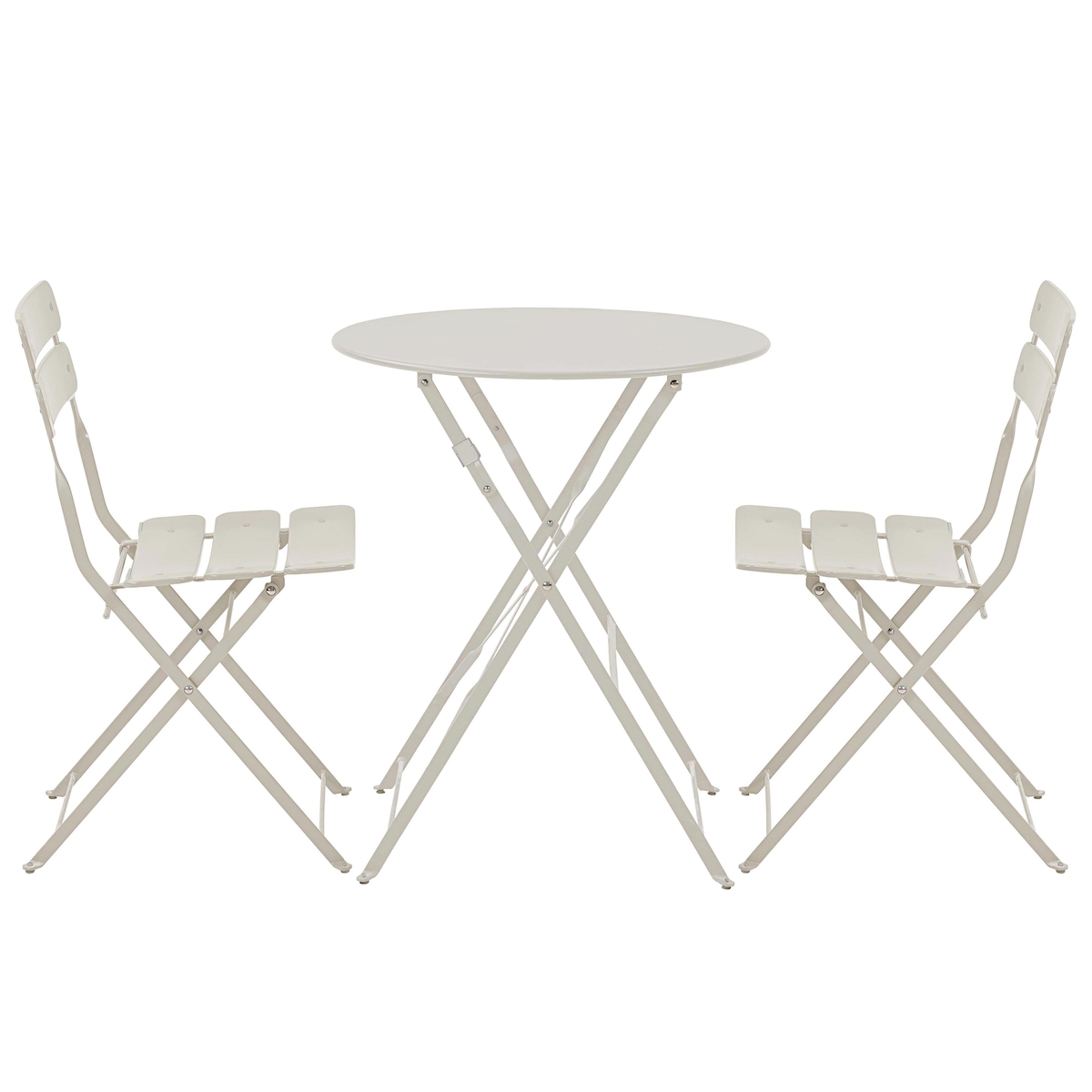 Oviala Business Runder klappbarer Gartentisch und 2 Klappstühle in Hellbeige