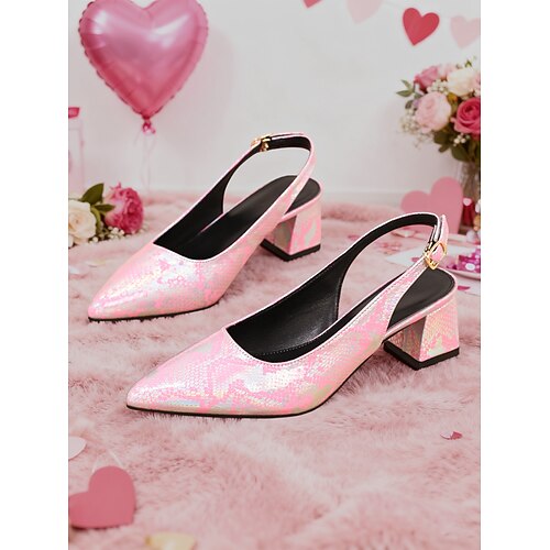 décolleté da donna con cinturino posteriore in pelle di serpente viola: eleganti tacchi a blocco con punta affilata, alla moda e comode per San Valentino, look quotidiano e per un appuntamento serale