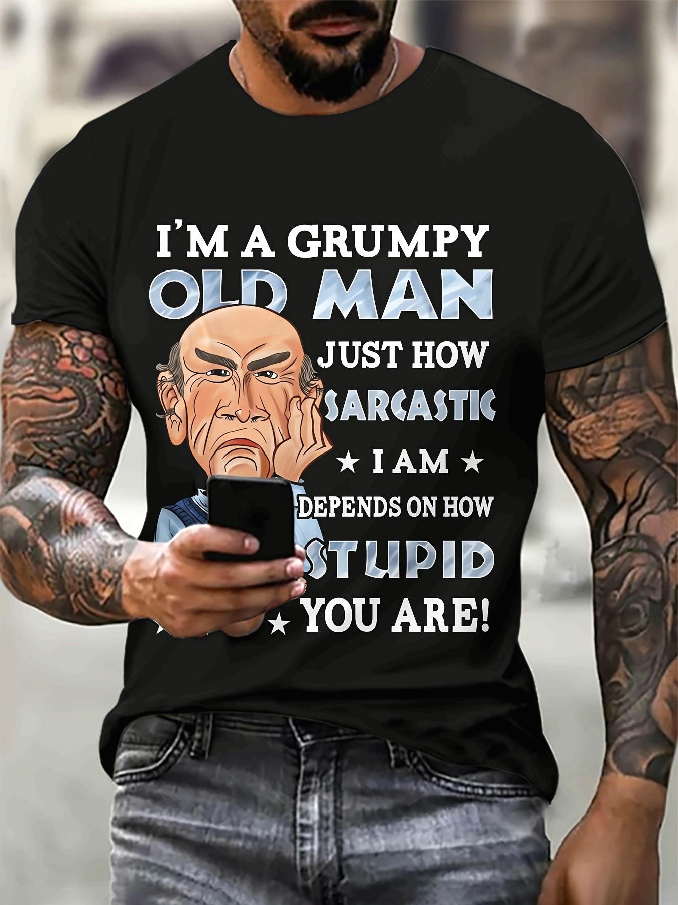 Men's Funny 'I'm a Grumpy Old Man' Sarcastic Graphic T-Shirt - 3D Digital Print Crew Neck Short Sleeve Shir cm
