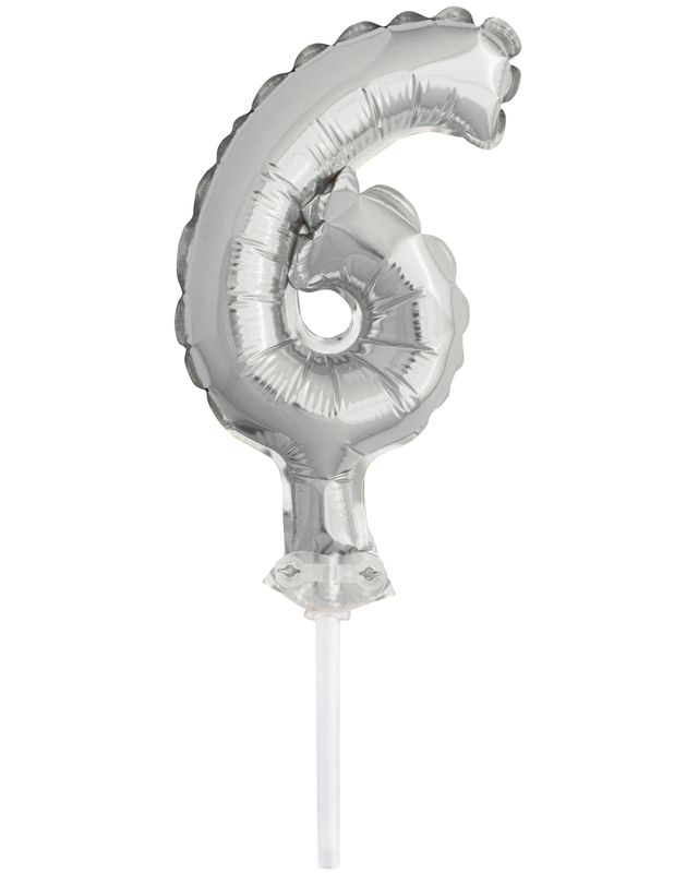 Kuchendeko Folienballon silber Zahl 6