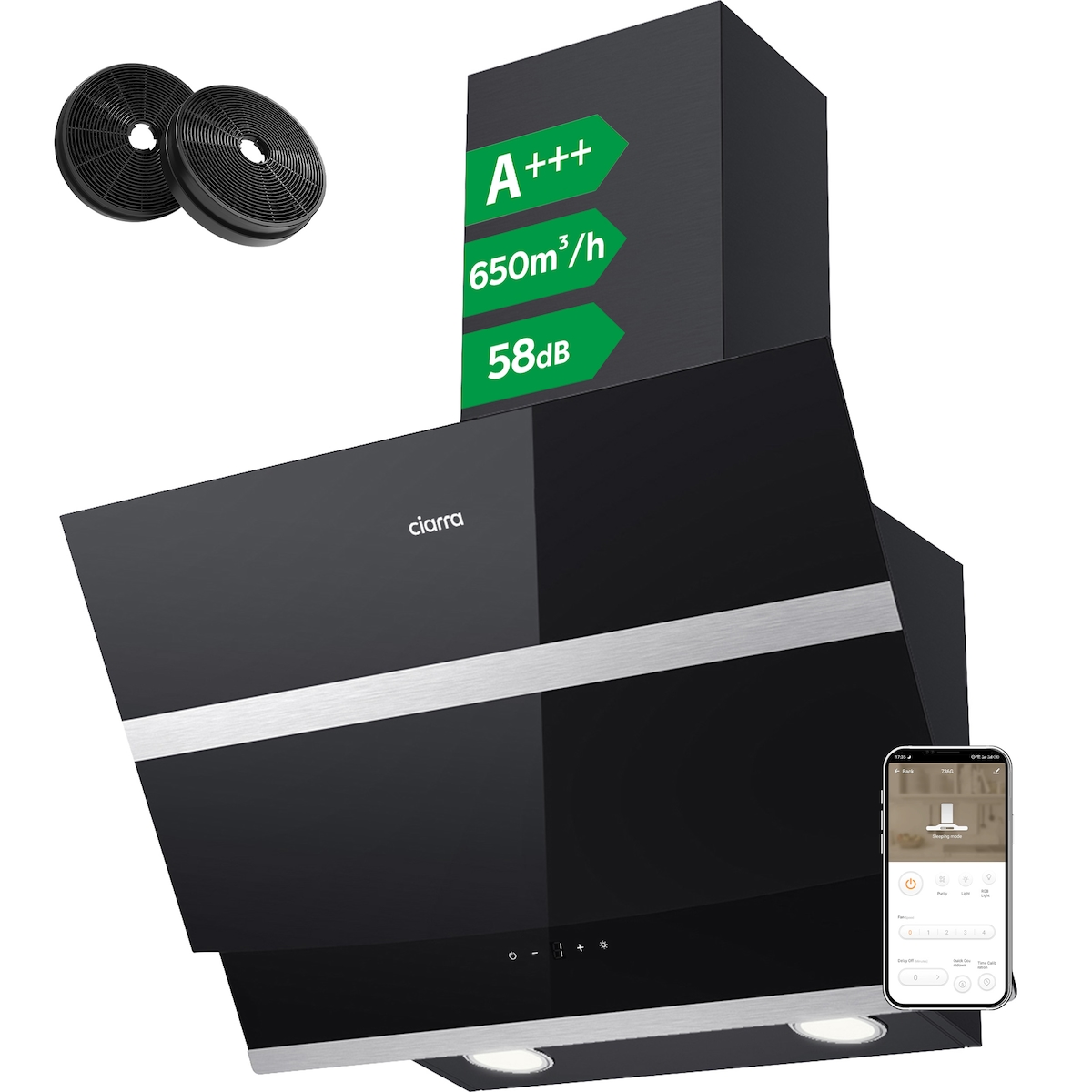 CIARRA A+++ 650 m³/h Dunstabzugshaube 60 cm Kopffreihaube WIFI + APP & Touch Control Booster VM6736NB