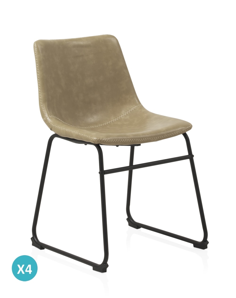 Lot de 4 chaises rembourrées crème avec pieds en métal noir