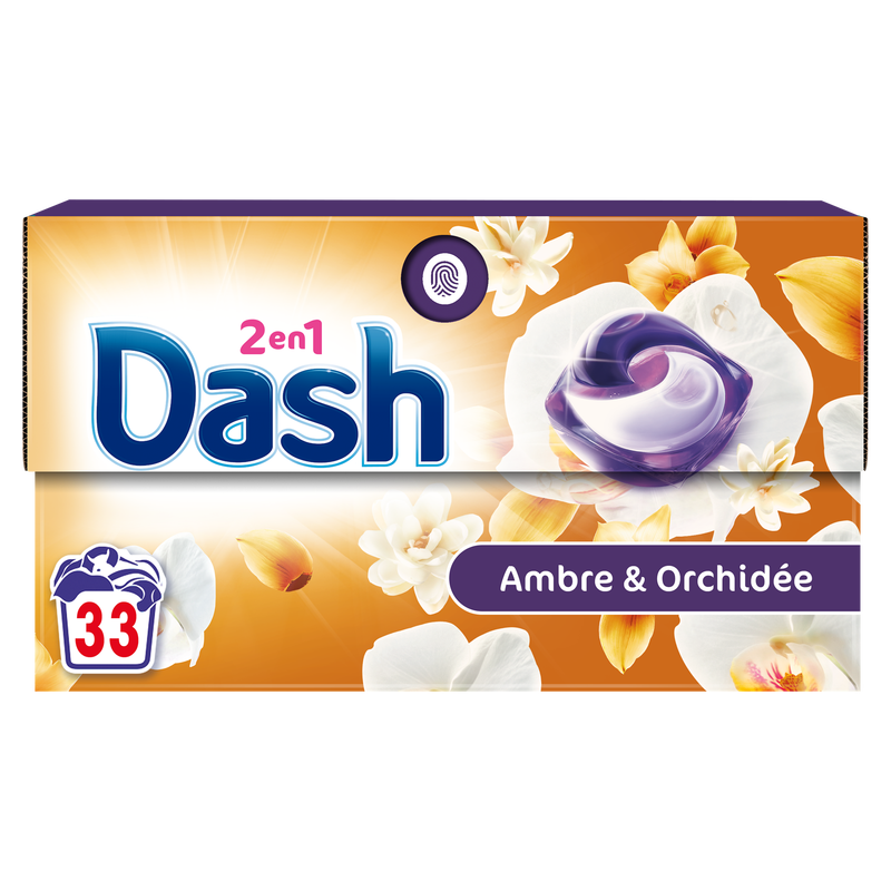DASH 2-en-1 Lot de 33 capsules de lessive parfum ambre et orchidée