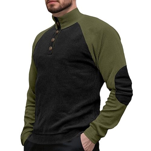 Per uomo Maglia Nero Vino Verde militare Blu marino Marrone Colletto Mao Blocco di colori Patchwork Sport Outdoor Quotidiano Ferie Poliestere Streetwear Essenziale Casual Primavera Autunno