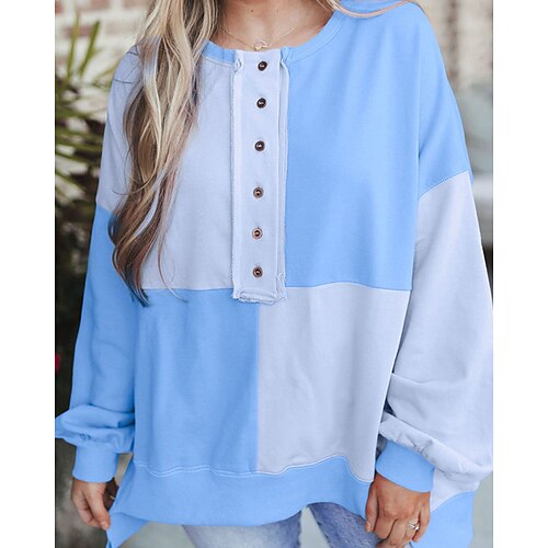 Per donna Felpe con cappuccio Blocco di colori Attivo Moda Casual Manica Lunga Girocollo Top Regolari Streetwear Casuale Uscire Patchwork Bottoni Nero Verde chiaro Rosa Blu Cachi Autunno Inverno