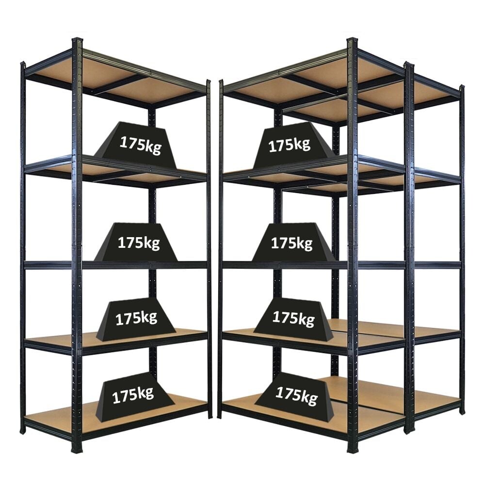 PROREGAL Mega Deal | 3x Schwerlastregal Giant Ragnar | HxBxT 200x100x50cm | 5 MDF-Platten-Ebenen | Fachlast 175kg | Schwarz | Stecksystem Lagerregal