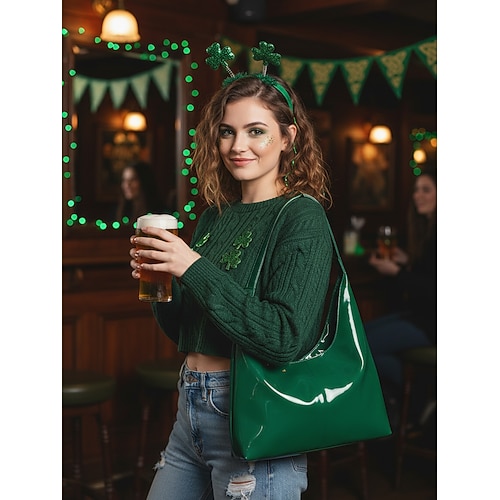 borsa a mano da donna in vernice verde – elegante borsa hobo elegante, perfetta per le celebrazioni di San Patrizio, casual aspetto festoso