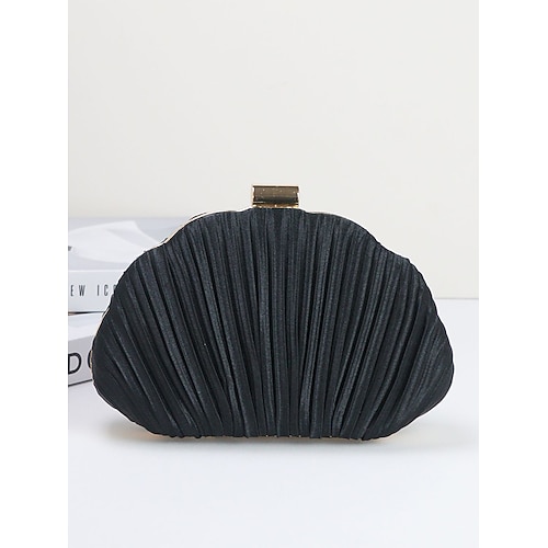 pochette da sera in raso plissettato a conchiglia da donna, color champagne metallizzato con montatura e catena dorate: glamour vintage per matrimoni, cocktail party, balli di fine anno e serate fuori