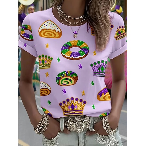 Carnevale Martedì grasso Per donna Maglietta Grafico Vintage Moda Elegante Manica Corta Girocollo Top Regolari Quotidiano Stampato Verde chiaro Viola Verde Estate Primavera