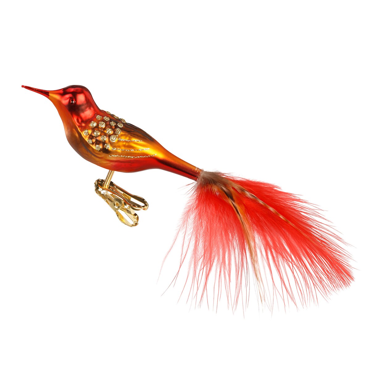 INGE-Glas Manufaktur Christbaumschmuck Glas Vogel auf Clip Federn Weihnachtskugeln Weihnachtsbaum rot