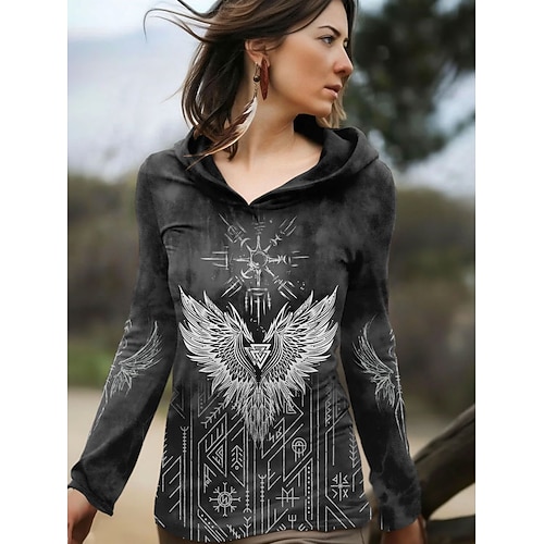 Per donna Maglietta Grafico Piante Vintage Elegante Classico Manica Lunga Con Cappuccio Top Regolari Quotidiano Weekend Stampato Blu Nero Bianco Rosso Primavera