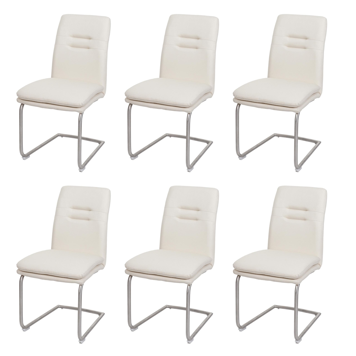Mendler 6er-Set Esszimmerstuhl HWC-H70, Küchenstuhl Freischwinger Stuhl, Stoff/Textil Edelstahl gebürstet ~ creme-beige