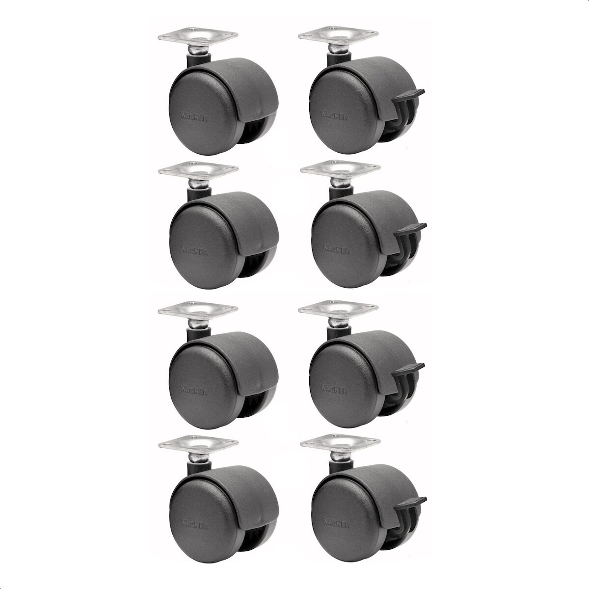 WAGNER Möbelrollen 8tlg. Set - HART - Ø 50 mm, Anschraubplatte 42 x 42 cm, 2 mit Bremse, Tragkraft je 30 kg - 02012688