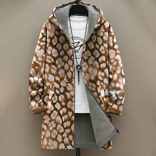 Per uomo Grafico Leopardato Cappotto Invernale Giacca in Pile Cappotto Calore Termico Confortevole Casual Abbigliamento quotidiano Cerniera Tasca Stampa 3D Autunno Inverno Con Cappuccio Manica Lunga