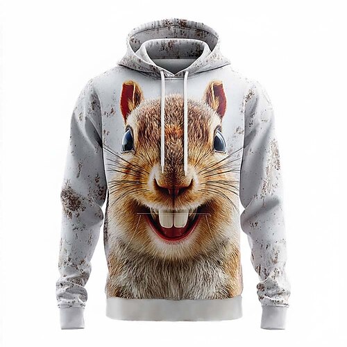Per uomo Animale 3D Scoiattolo Felpa con Cappuccio Felpa Esagerato Cool Festa Manica Lunga Girocollo All'aperto Club Abbigliamento casual alla moda Bianco 1 Bianco 2 Bianco 3 Coulisse Autunno Inverno