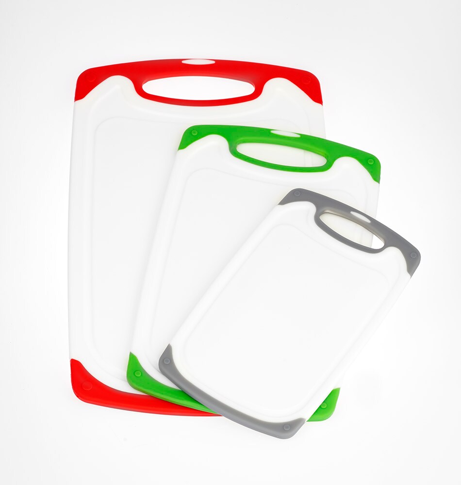 Caterado 3-teiliges Schneidbrett-Set "Star" aus weißem Kunststoff mit farbigen Rändern, je Größe eine andere Farbe.