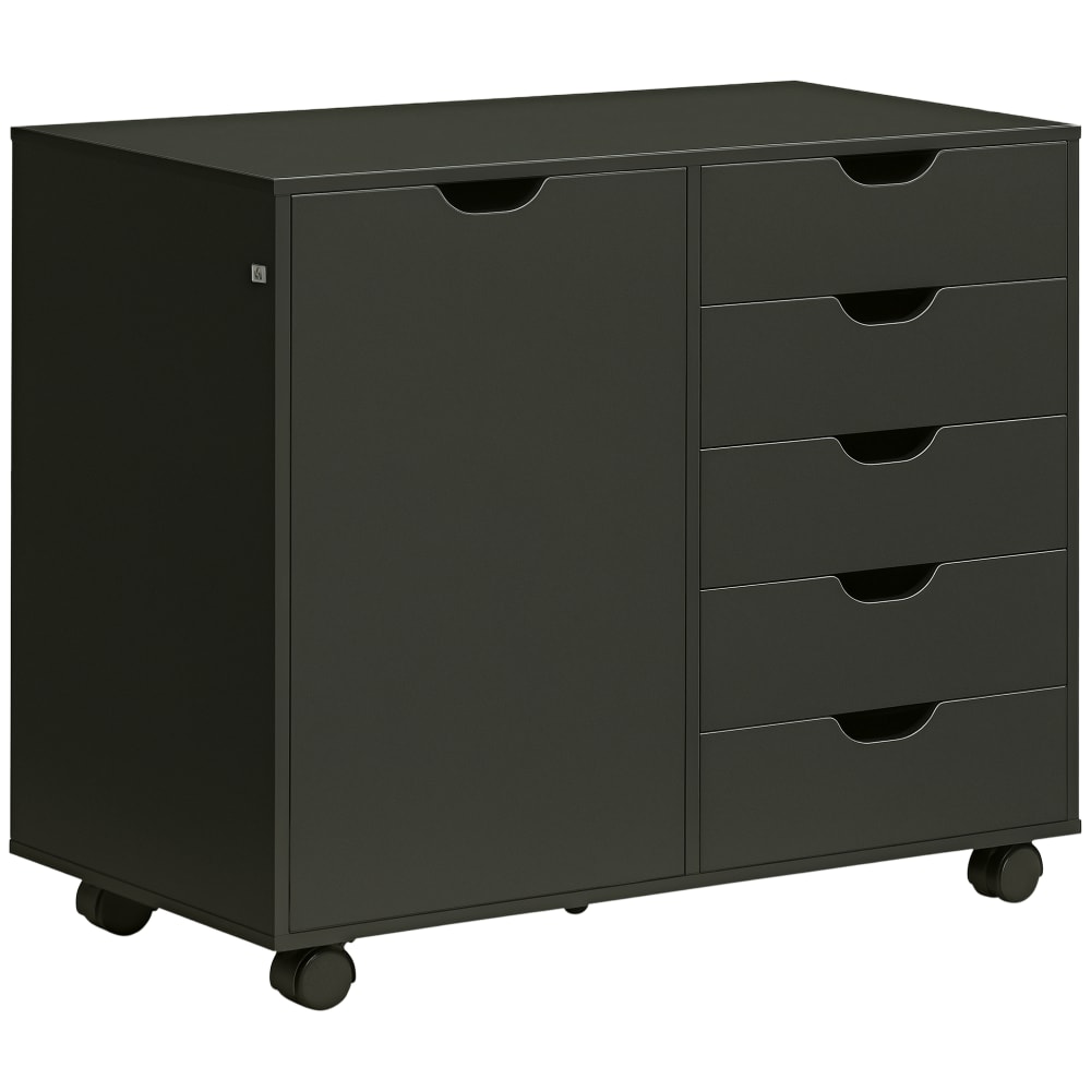 Caisson de bureau mobile 5 tiroirs 1 porte panneau de particules noir