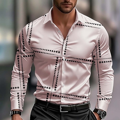 Per uomo A righe Motivo Geometrico Geometria Camicia Camicia con Bottoni Manica Lunga Moda Streetwear Designer All'aperto Casuale Quotidiano Estate Primavera Autunno Collo alla coreana Stampato