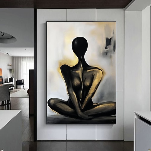elegante donna nuda nera dipinta a mano, silhouette su tela, figura femminile sexy, dipinto a olio, figura dipinta a mano, dipinti a olio, arte murale, stile vintage, tela, arredamento glamour per la
