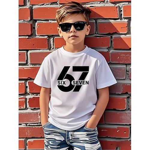 Ragazzi 3D Grafico Gergo divertente 67 Maglietta Manica Corta Stampa 3D Estate Primavera Sport Moda Streetwear Bambini 4-12 Anni Girocollo All'aperto Casuale Quotidiano Vestibilità regolare
