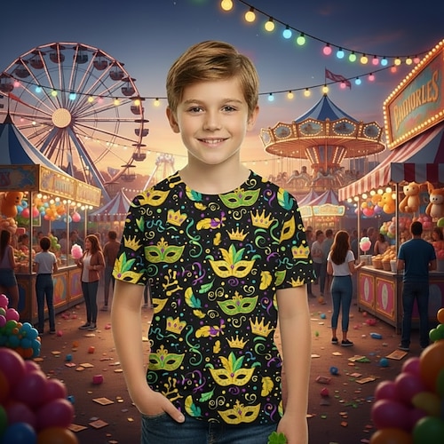 Carnevale Ragazzi 3D Grafico Maschera Martedì grasso Maglietta Manica Corta Stampa 3D Estate Primavera Sport Moda Streetwear Bambini 4-12 Anni Girocollo Casuale Quotidiano All'aperto Vestibilit