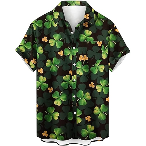 camicia da uomo per il giorno di san patrizio camicia hawaiana estiva stampe grafiche giorno di san patrizio st. giorno di san patrizio trifoglio turndown giallo chiaro verde / nero verde oliva