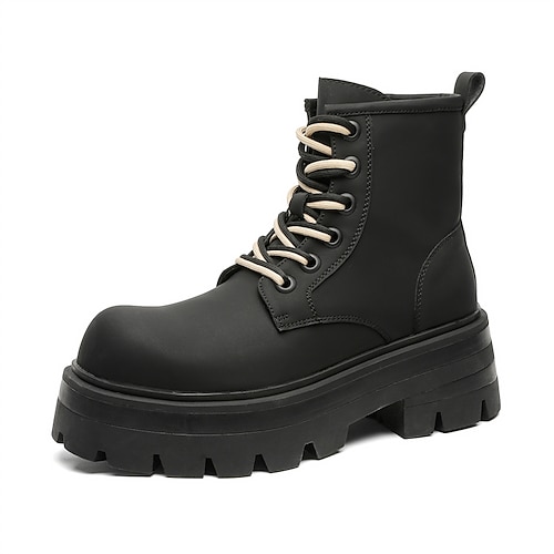 Per uomo Stivali Stivali da Lavoro Camminata Vintage Quotidiano PU Aumento Altezza Confortevole Stivali a Metà Polpaccio Allacciatura Nero Autunno Inverno