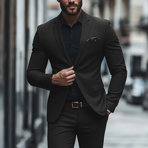 Uomo Casuale Abiti da lavoro Bavero classico Nero Borgogna Quotidiano Affari Tinta unita Vestibilità su misura 2 pezzi Monopetto Due Bottoni