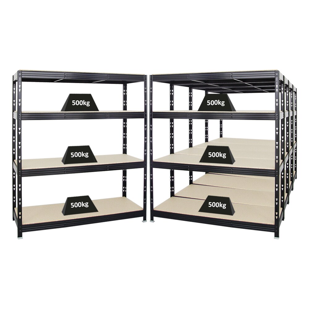 Proregal Mega Deal | 4x Profi Schwerlastregal Rhino | HxBxT 200x200x60cm | 4 Spanplatten-Ebenen 16mm | Fachlast 500kg | Schwarz