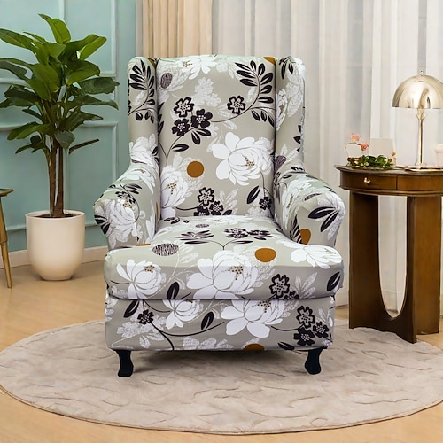 Copripoltrona con schienale alto, copripoltrona in poliestere con stampa geometrica a righe e motivi floreali, copripoltrona pieghevole alla moda, copripoltrona