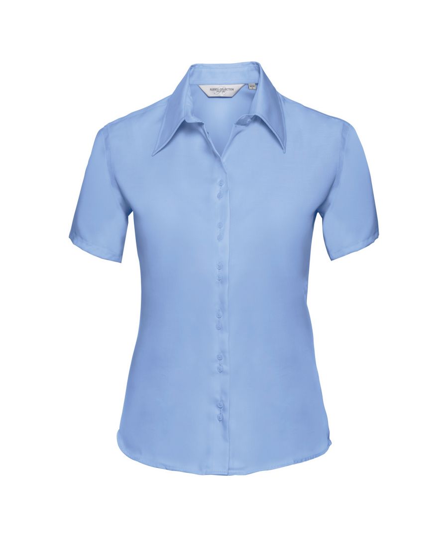 Russell Athletic Collection Ladies/womens Short Sleeve Ultimate Non-iron Shirt (bright Sky) - Blue Cotton - Size 2XL