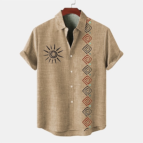 Per uomo Camicia camicia di lino camicie retrò Camicia d'epoca Camicia etnica Tribale Giornaliero Blu Verde Kaki Manica corta Collo ripiegabile Estate Abbigliamento
