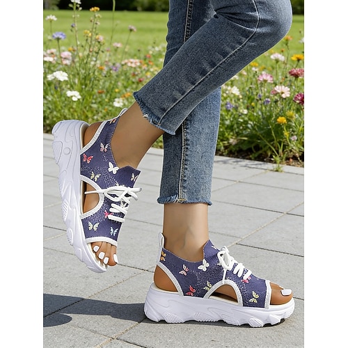 sandali con plateau e stampa floreale colorata da donna - sandali da ginnastica aperti con lacci per le uscite estive, le passeggiate e le vacanze informali