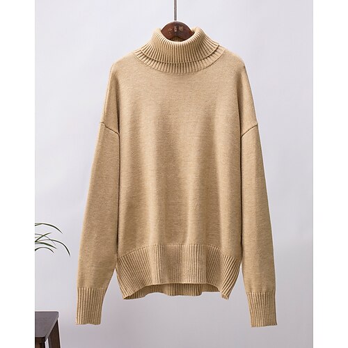 Per donna Felpa Maglione Vintage Moda Streetwear Tinta unica Dolcevita Lavorato a maglia Manica Lunga Top Regolari Maglia Quotidiano Ferie Uscire Nero Bianco Autunno Inverno