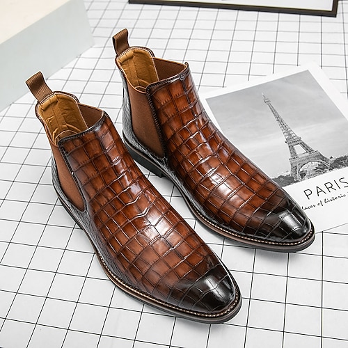 stivaletti chelsea da uomo con motivo coccodrillo – stivaletti marroni slip-on con pannelli laterali elastici, stile casual da lavoro per ufficio, matrimoni e occasioni formali