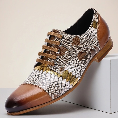 scarpe stringate da uomo con stampa pitone: esclusivo motivo a pelle di serpente con design colorblock alla moda, moda moderna per la vita notturna, cocktail party ed eventi di moda