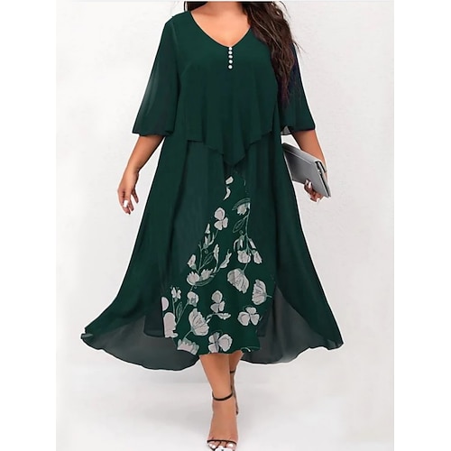 Per donna Taglie Forti Vestito Casual Floreale Scollo a V Manica 3/4 Primavera Autunno Elegante Moda Moderno Casual Abito Midi Quotidiano Ferie Vestito