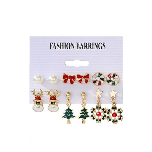 set di orecchini natalizi da donna, lega placcata in oro con motivi festivi, renne, stelle e alberi di Natale, gioielli natalizi per feste e celebrazioni invernali