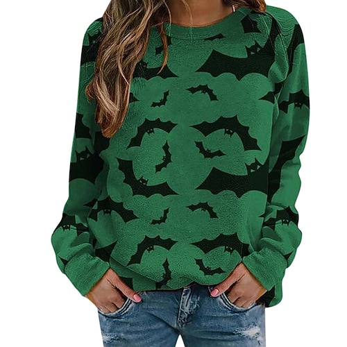 Per donna Felpa Pullover Felpe Gatto Zucca Streetwear Casual Manica Lunga Girocollo Top Regolari Streetwear Ferie Uscire Stampato Nero Giallo Verde scuro Arancione Verde Autunno Inverno
