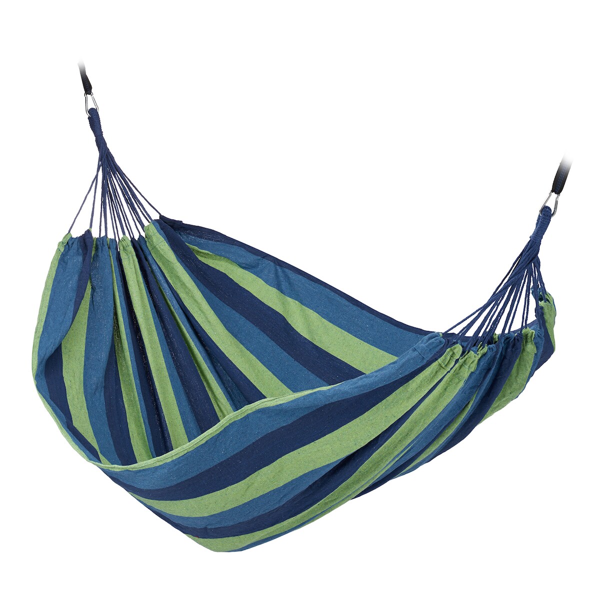 Relaxdays Hängematte, XXL, Hängeliege 2 Personen, bis 300 kg, tragbar, In- & Outdoor, Baumwolle, 150 x 272 cm, blau-grün