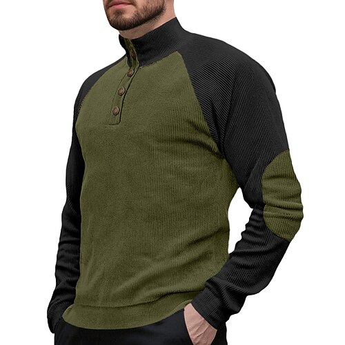 Per uomo Maglia Nero Bianco Blu marino Blu Verde Colletto Mao Blocco di colori Patchwork Sport Outdoor Quotidiano Ferie Poliestere Vintage Essenziale Casual Primavera Autunno Abbigliamento Felpe