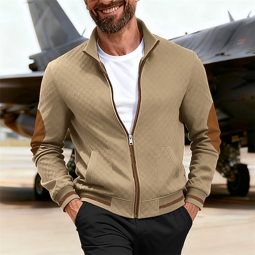 Per uomo Giacca Leggera Giacca Casual All'aperto Vacanza Jacquard Tasca Primavera Autunno Blocco di colori Streetwear Elegante Colletto Mao Regolare Nero Bianco Blu marino Verde Cachi Giacca