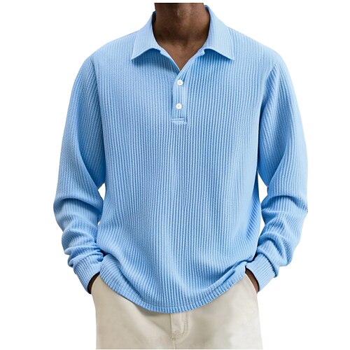 Per uomo Blocco di colori Polo Testurizzato Manica Lunga Magliette polo Bavero Abbigliamento Sportivo Casual Scuola Athleisure Abbigliamento quotidiano Stampa 3D Primavera Autunno Inverno Blu Rosa